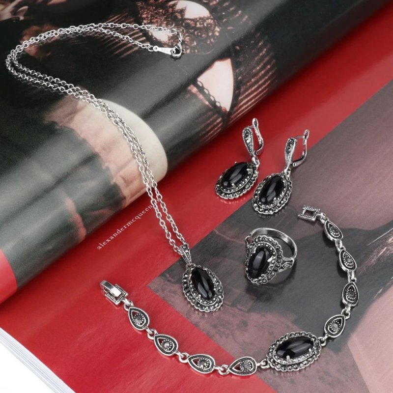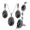 Set argint cu marcasite 4 piese Lady Black Onix 19 mm