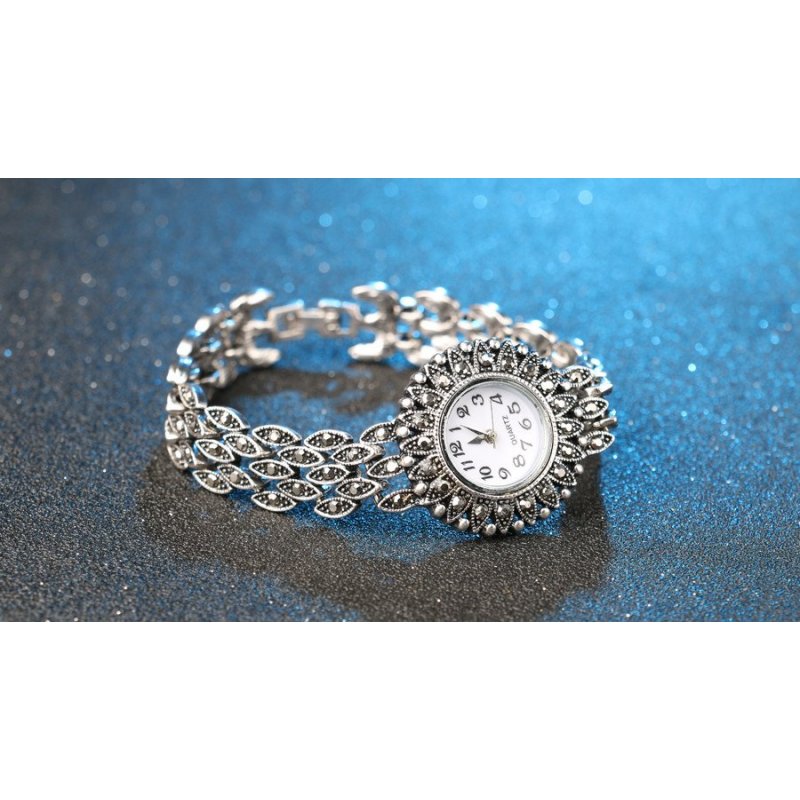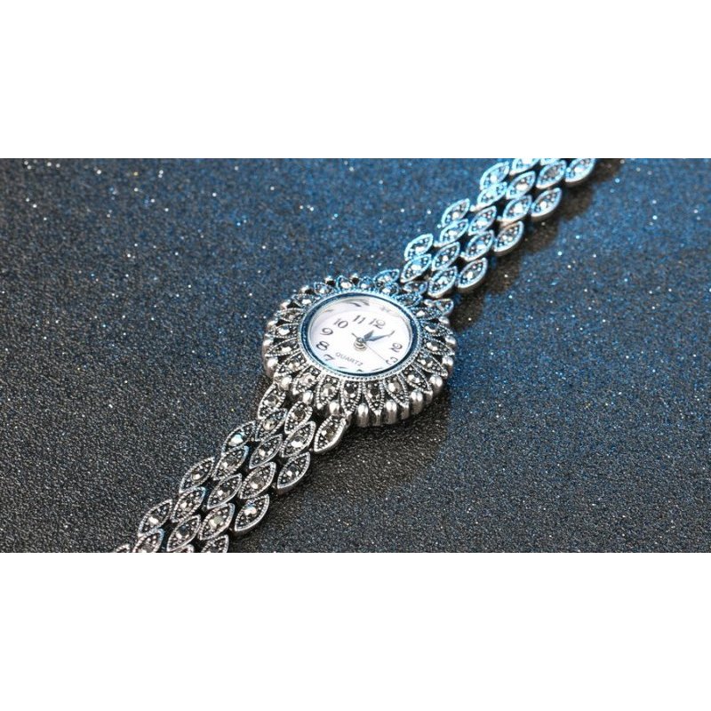 Acest ceas de marcasite vintage din argint nu este nimic mai mult decât maiestuos și va deveni o adevărată bijuterie din colecția vintage. Este fabricat din argint 925.