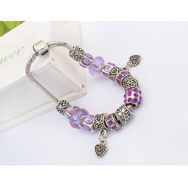 Bratara tip Pandora Charm Inimi, mov