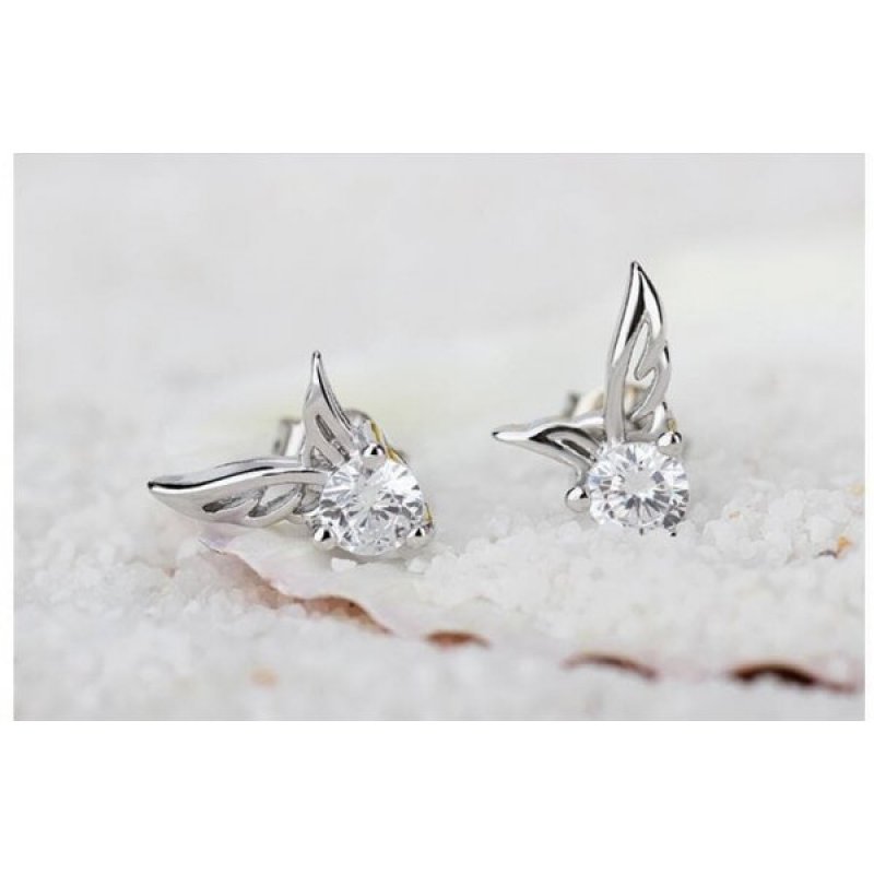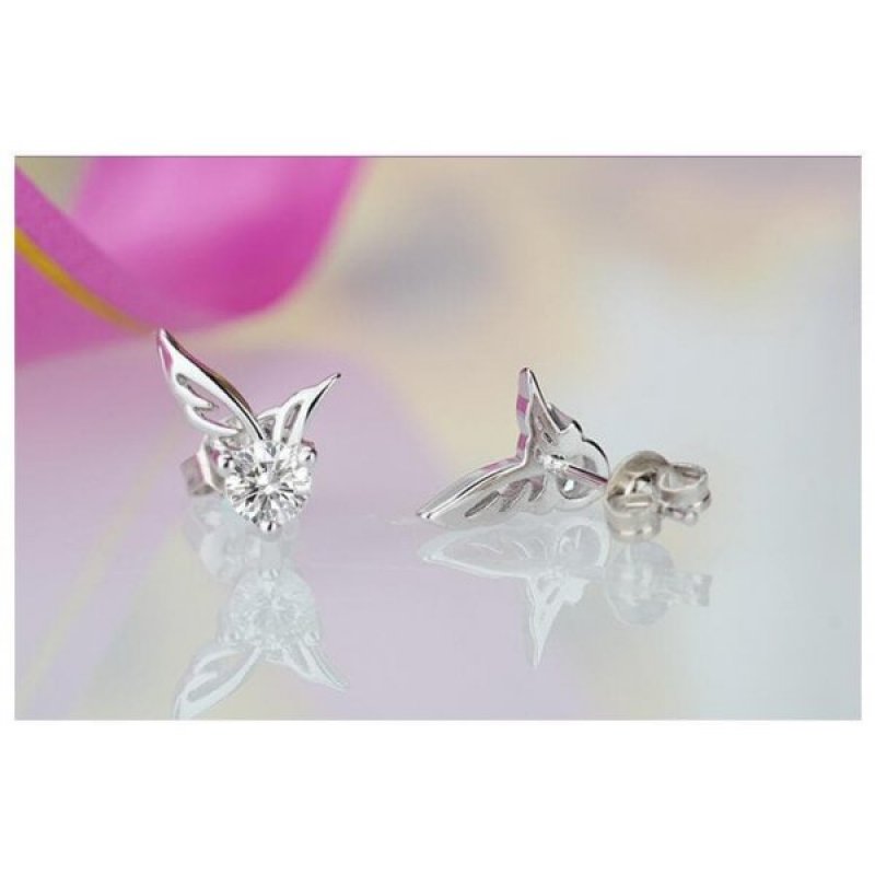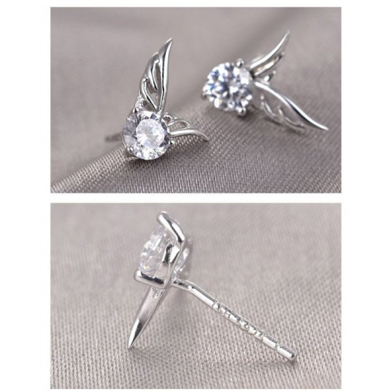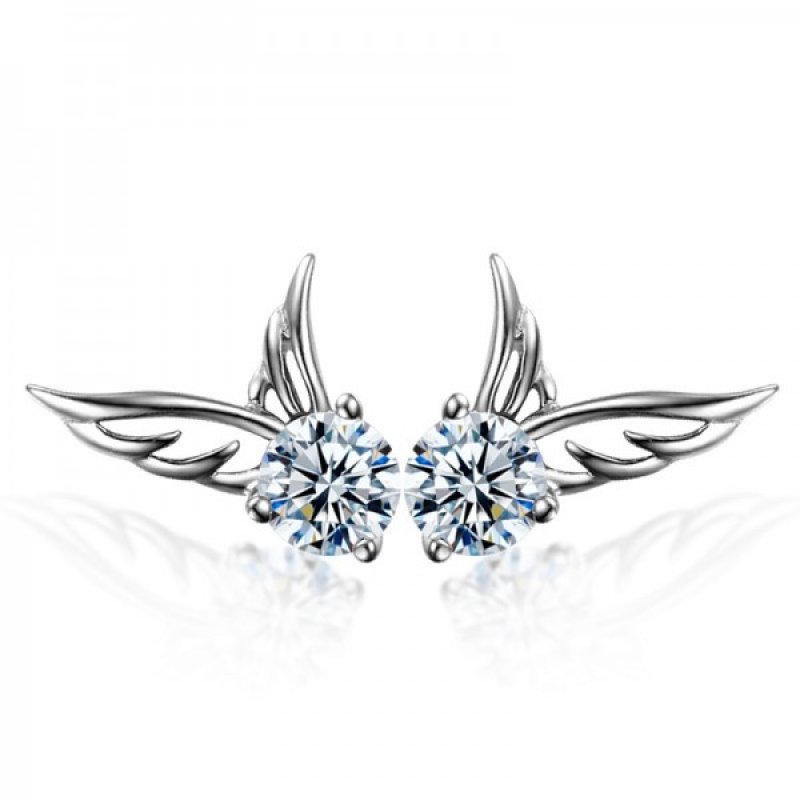 Cercei de argint cu aripi de inger, cu elemente Swarovski