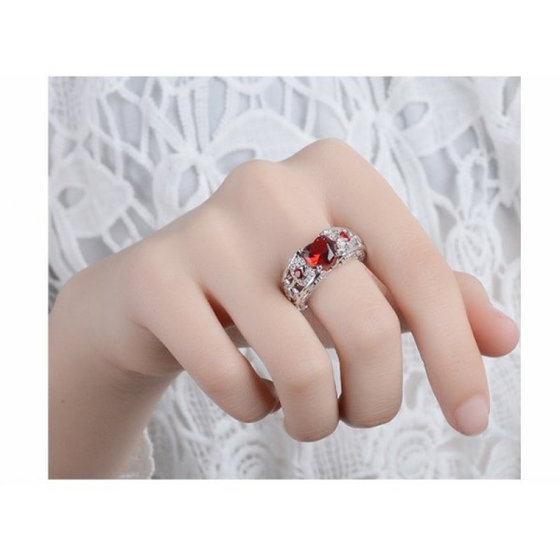 Inel Red Love, Placat cu aur alb, Elemente Swarovski