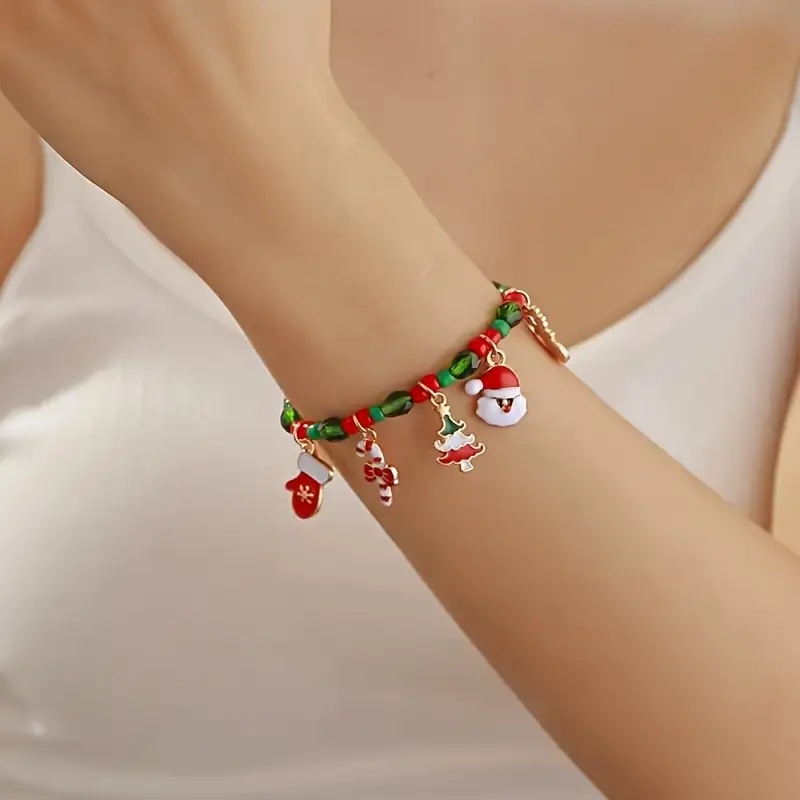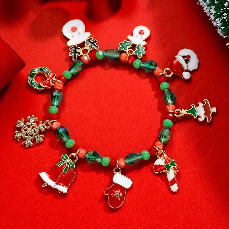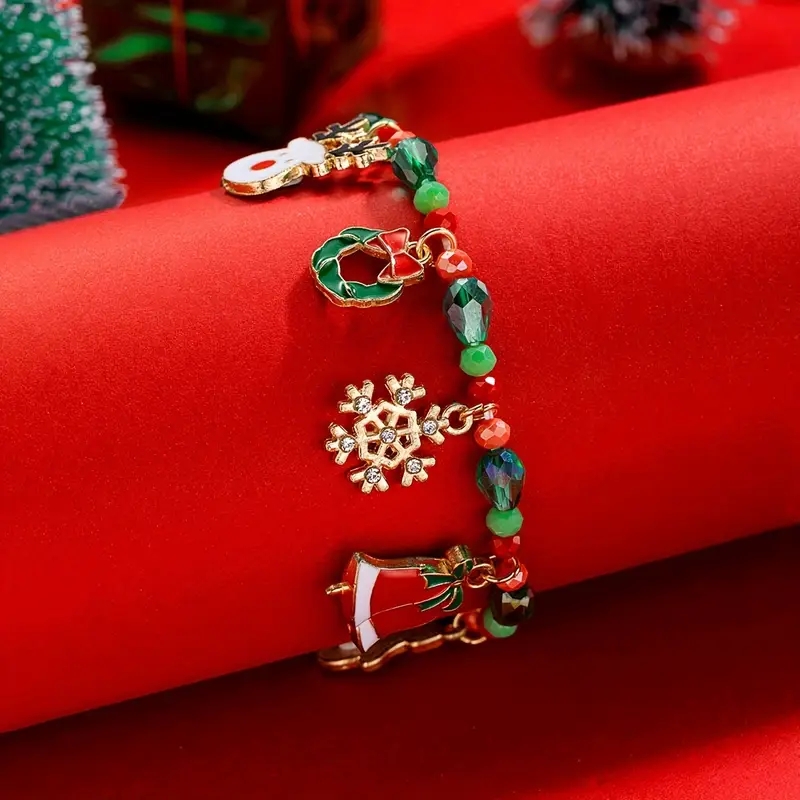 Brățară festivă cu farmec de Crăciun: reni adorabili, Moș Crăciun, pandantive cu fulgi de nea, perfectă pentru petreceri și cadouri de sărbători